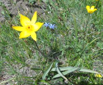 Ma la fortuna stavolta è dalla nostra parte e con relativa sicurezza ci incamminiamo verso la ristretta zona in cui sono presenti le foglie inconfondibili del tulipano spontaneo: ecco qualche bocciolo … poi qualche fiore .. più o meno aperto …. Cominciamo freneticamente a fotografare e la Zanetti spiega che l'areale è estremamente ridotto, si può definire contando solo qualche decina di passi.